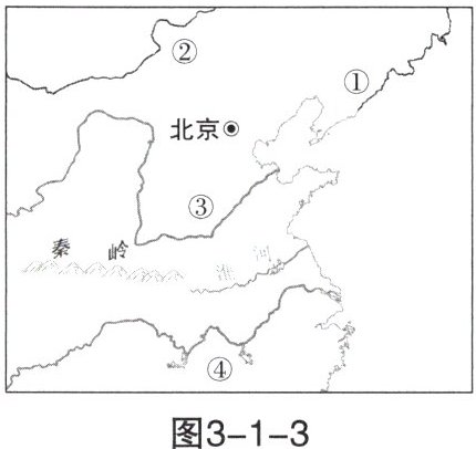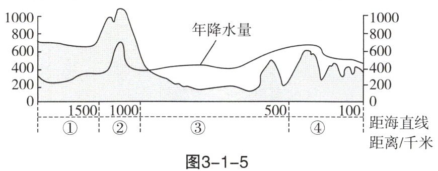 5. 读图3-1-5中国中温带某地的地形剖面图及年降水量曲线图,①②③④四个区域的土地利用类型依次为(