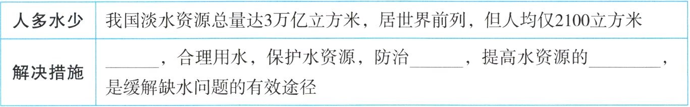 |人多水少|我国淡水资源总量达3万亿立方米,居世界前列,但人均仅2100立方米|