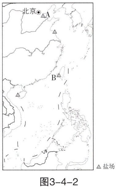 (1)图中A、B是我国主要盐场的位置示意。其中,我国目前最大的盐场A