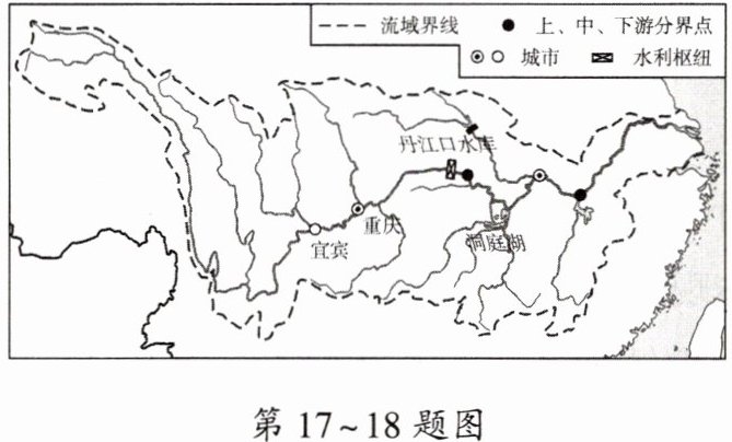 [2024·郑州期末]“长波逐若泻,连山凿如劈”这是唐代白居易《自蜀江至洞庭湖口有感而作》中描写长江的语句。蜀江通常指宜宾至重庆河段的长江。读长江水系图,完成17~18题。
