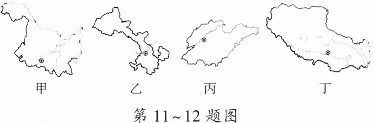 11.B 解析:读图可知,甲为黑龙江省,乙为甘肃省,丙为山东省,丁为西藏自治区。12.D