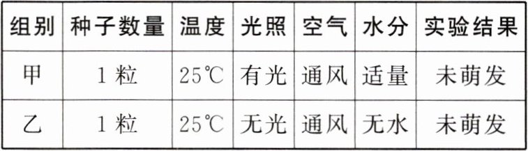 8. 核心素养·探究实践[2024·永寿县二模]为了探究蚕豆种子萌发是否与光照有关,西西制定了如表所示的实验方案,分析表格,下列说法错误的是(
