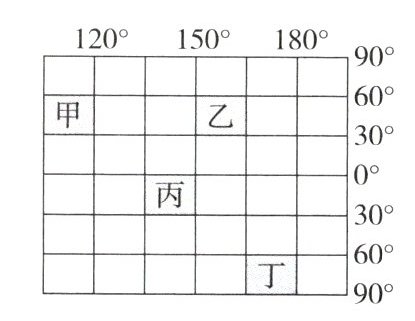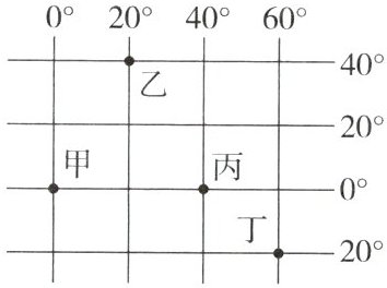 2. 甲、乙、丙、丁四点的地理位置正确的是( )