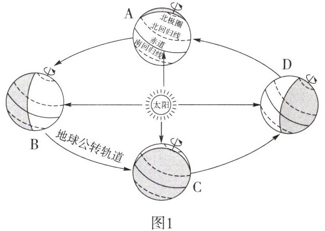 (1)地球在自转的同时,还围绕着太阳不停地公转,地球公转方向是