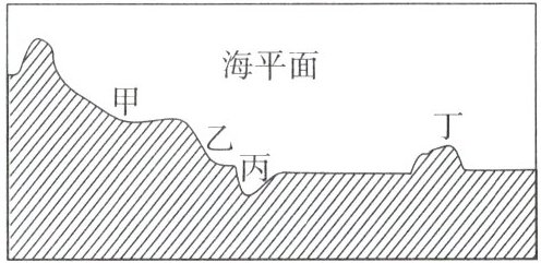 5. 如图为某海域海底地形剖面示意图,甲、乙、丙、丁四处地形依次是(