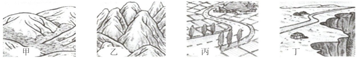 读丘陵、山地、高原和平原景观图,完成2~4题。