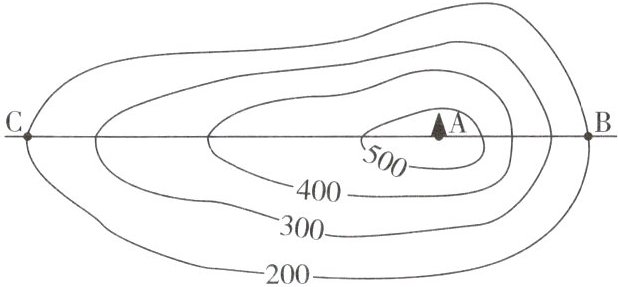 7. 下列关于B、C两点到山顶A的说法,正确的是(