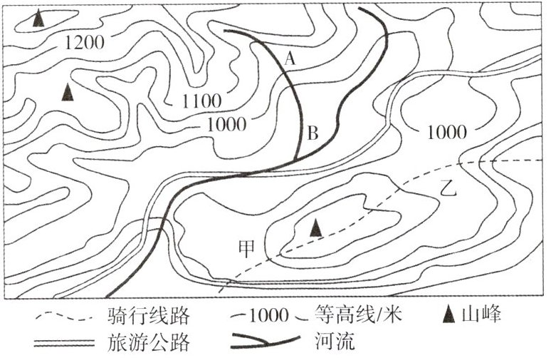 某校组织学生赴太行山研学,地理小组的同学们准备了该地等高线地形图为野外考察提供参考。如图是太行一号旅游公路某段等高线地形图。据此完成3~4题。
