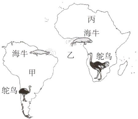 )A. 目前,两大洲间海牛、鸵鸟往来频繁