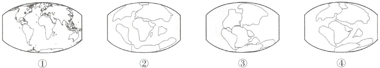 下面是根据“大陆漂移假说”绘制的不同时期大陆分布示意图。读图,完成2~3题。