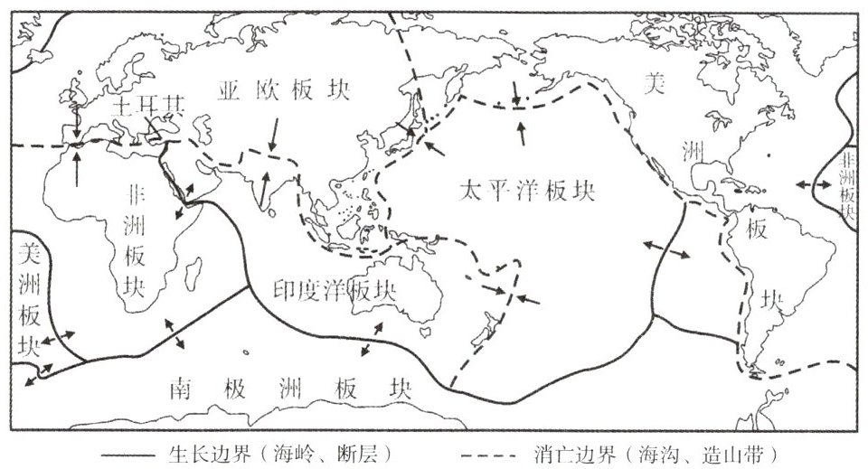 北京时间2023年2月6日,土耳其接连发生了两次7.8级地震,造成重大人员伤亡和财产损失。读以下世界板块分布图,完成6~7题。