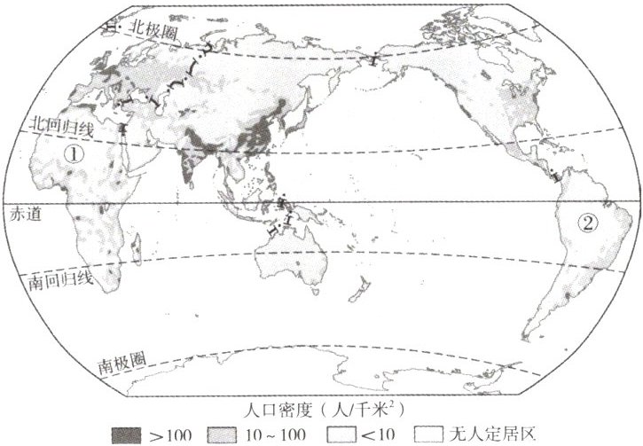 (1)读图可知,世界人口分布