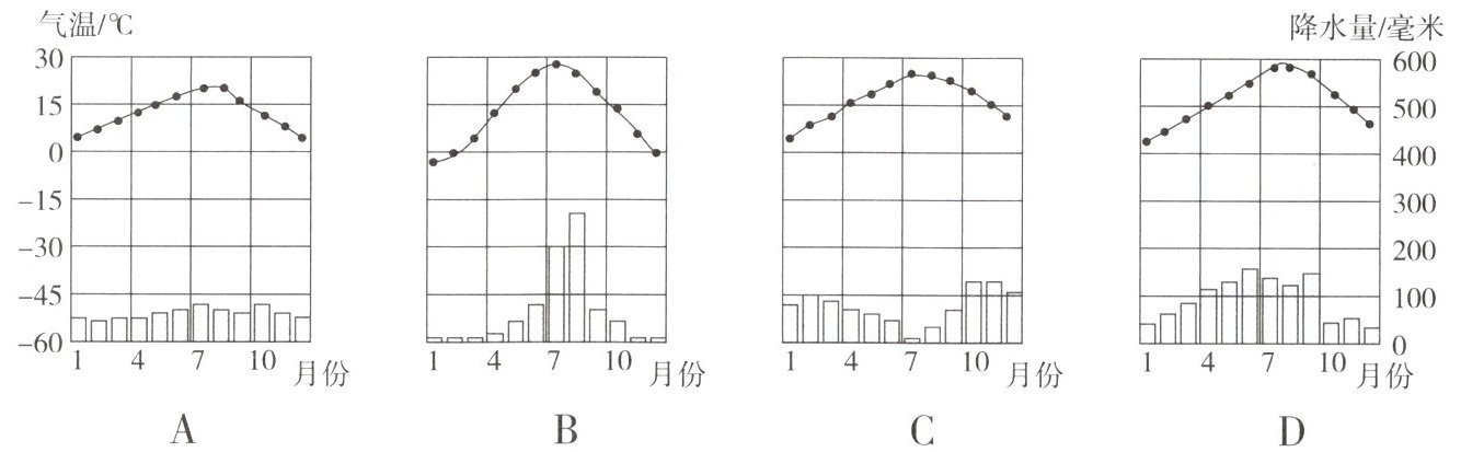 6. 据以下四地气温年变化曲线和逐月降水量图判断,正确的说法是(