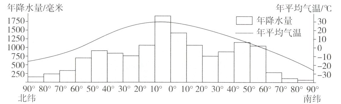 9. 下列关于全球年平均气温及年降水量分布特点的描述,正确的是(
