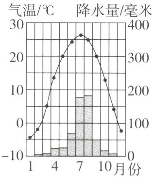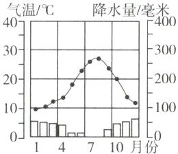 10. 读某地的气温年变化曲线和逐月降水量图,完成下列问题。