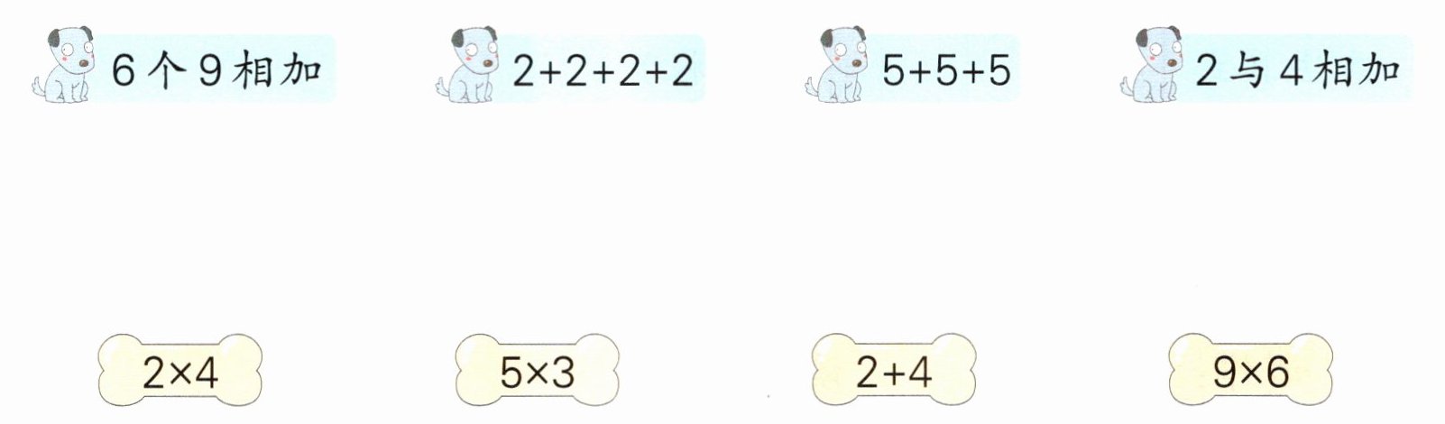 6个9相加 $2 + 2 + 2 + 2$ $5 + 5 + 5$ 2与4相加