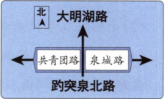 王叔叔开车行驶在趵突泉北路,此时车头朝(