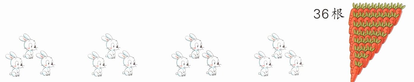 (1)把这些胡萝卜平均分给 4 组小兔,每组分得多少根?