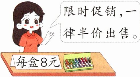 解析:先计算出现在一盒蜡笔的售价是多少元,半价就是原价的一半,列式为8÷2,再计算一共要付多少元,列式为8÷2×7。