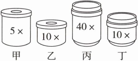 13. 如图是光学显微镜的四个镜头分别为甲、乙、丙、丁。若要在视野内看到的细胞最多,最适合选用的镜头组合是(