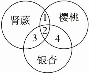3. 小秦在比较肾蕨、樱桃和银杏的共同特征后,绘制了如图所示概念图。下列分析正确的是( )
