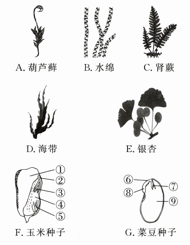 (1)上述属于藻类的是______,属于苔藓植物的是______。(均填字母)