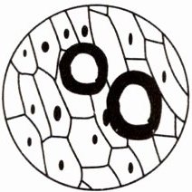 2 视野中出现了气泡,可能是盖盖玻片不规范造成的。为了防止盖玻片下出现气泡,在盖盖玻片时,应用镊子夹起盖玻片,使它的一侧先接触载玻片上的液滴,然后缓缓放平。