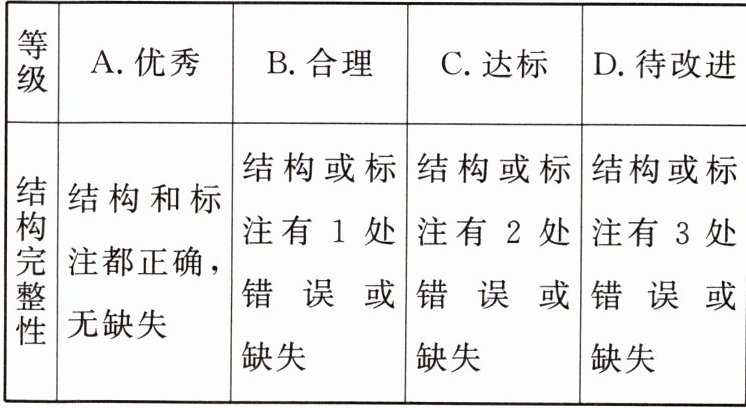 含有的色素有关。(4)根据下面评价量表中结构完整性指标,评价该细胞模型等级应为________(填字母),说明理由:________。