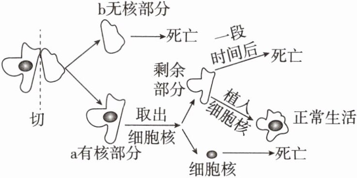 15. 某科学家进行了如图所示的变形虫切割实验,请你辨别下列分析错误的是(