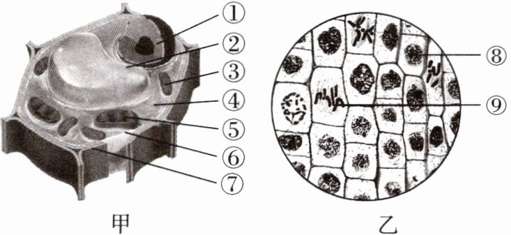 (3) 图乙中的部分洋葱根尖细胞处于分裂过程,其中⑧所代表的结构是
