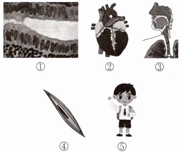 19. 如图①~⑤为人体不同结构层次,由微观到宏观可以排列为(