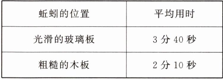 (3)同学们找到两条大小和活力相似的蚯蚓分别放在光滑的玻璃上和粗糙的木板上,测量它们行进 3 cm 所用的时间,分别重复 3 次,取平均值,填入表中。