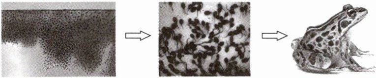 8. 青蛙对产卵环境要求较高,通常会精心挑选水质清澈、污染少且富含浮游生物的水域,如池塘、溪流或稻田中。如图表示青蛙发育过程的三个阶段,请回答下列问题。