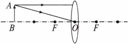 17. 如图所示,请画出蜡烛 $ AB $ 经凸透镜所成的像 $ A^{\prime} B^{\prime} $。