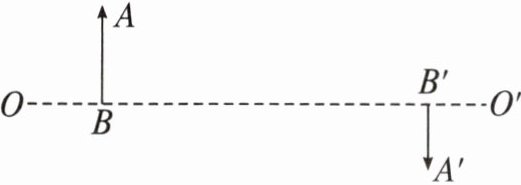19. 如图所示,$ OO^{\prime} $ 为凸透镜的主光轴,$ AB $ 是发光物体,$ A^{\prime} B^{\prime} $ 是 $ AB $ 经过凸透镜所成的像,请通过作图找出凸透镜的位置 $ H $,并标出凸透镜的左焦点 $ F $。(保留作图痕迹)