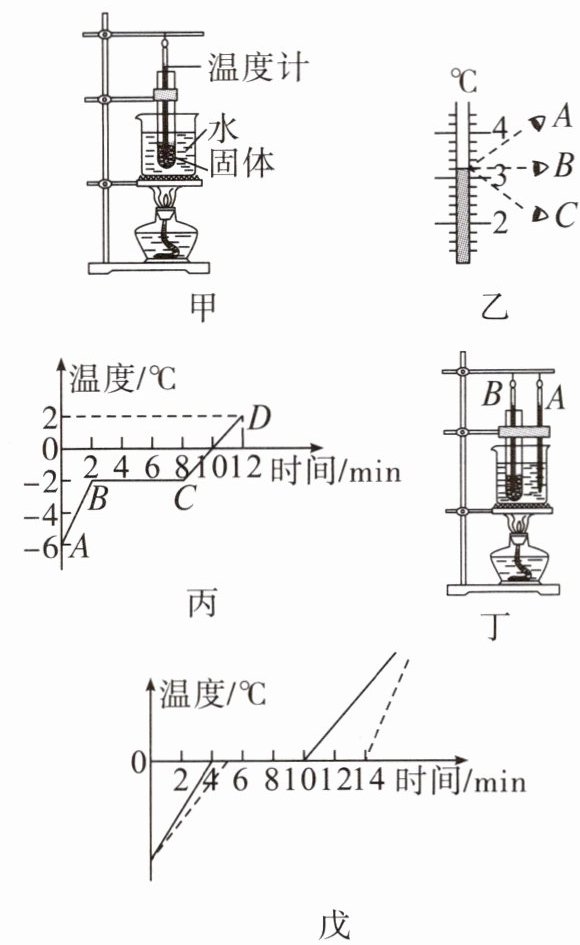 ②如图戊所示,第8min时烧杯内的碎冰处于______态,此时试管内的碎冰处于______态。