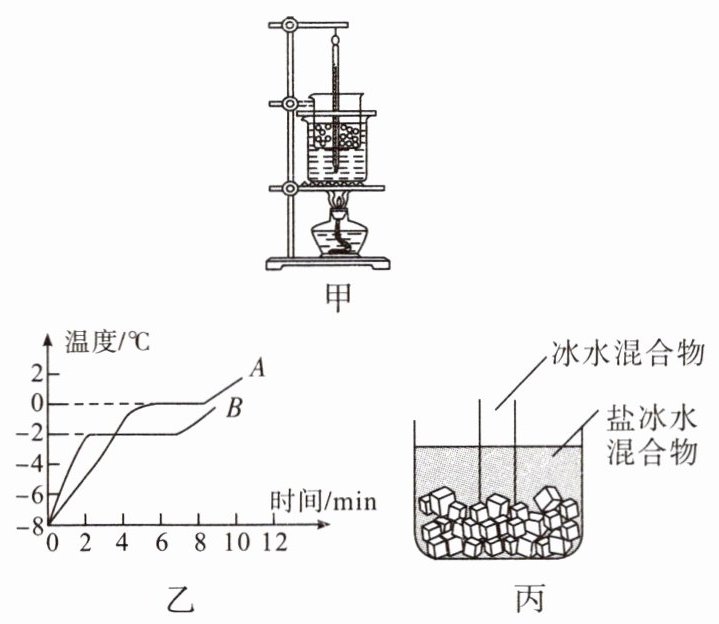 (3) 小涵又将一装有冰水混合物的试管放入正在熔化的盐冰水混合物中,如图丙所示,烧杯中含盐的冰未完全熔化前,试管中的冰会______(选填“变多”“变少”或“不变”)。