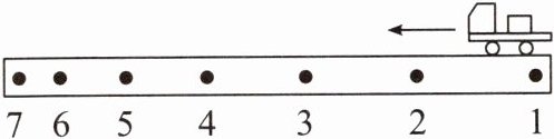★★24. 把带有滴墨水装置的小车放在置于水平桌面上的纸带上,小车每隔0.2s滴一滴墨水。当小车向左做直线运动时,在纸带上留下了一系列墨迹,其分布如图所示。第1滴墨水至第7滴墨水总长度为1.2m。则: