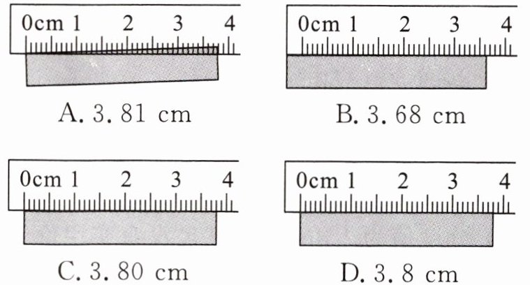 1. 用毫米刻度尺测量一工件的长度,其中测量方法和读数都正确的是( )