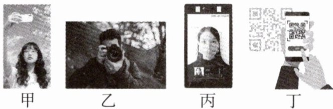 (3)手机扫码支付极大方便了人们的生活。如图丁所示,使用手机扫描二维码,相当于给二维码拍了一张照片,二维码______(选填“是”或“不是”)光源,摄像头到二维码的距离与摄像头焦距的关系是______(选填“$u>f$”“$f<u<2f$”或“$u>2f$”)。