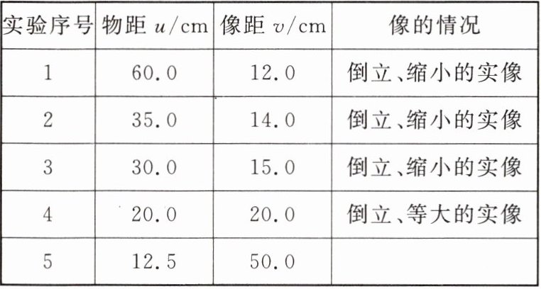 |实验序号|物距$u$/cm|像距$v$/cm|像的情况|
