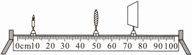 (3)小潘将蜡烛放在$10$cm刻度线处,移动光屏到如图所示位置,光屏上恰好呈现烛焰清晰的像,该像的情况是倒立、______(选填“放大”“缩小”或“等大”)的实像。