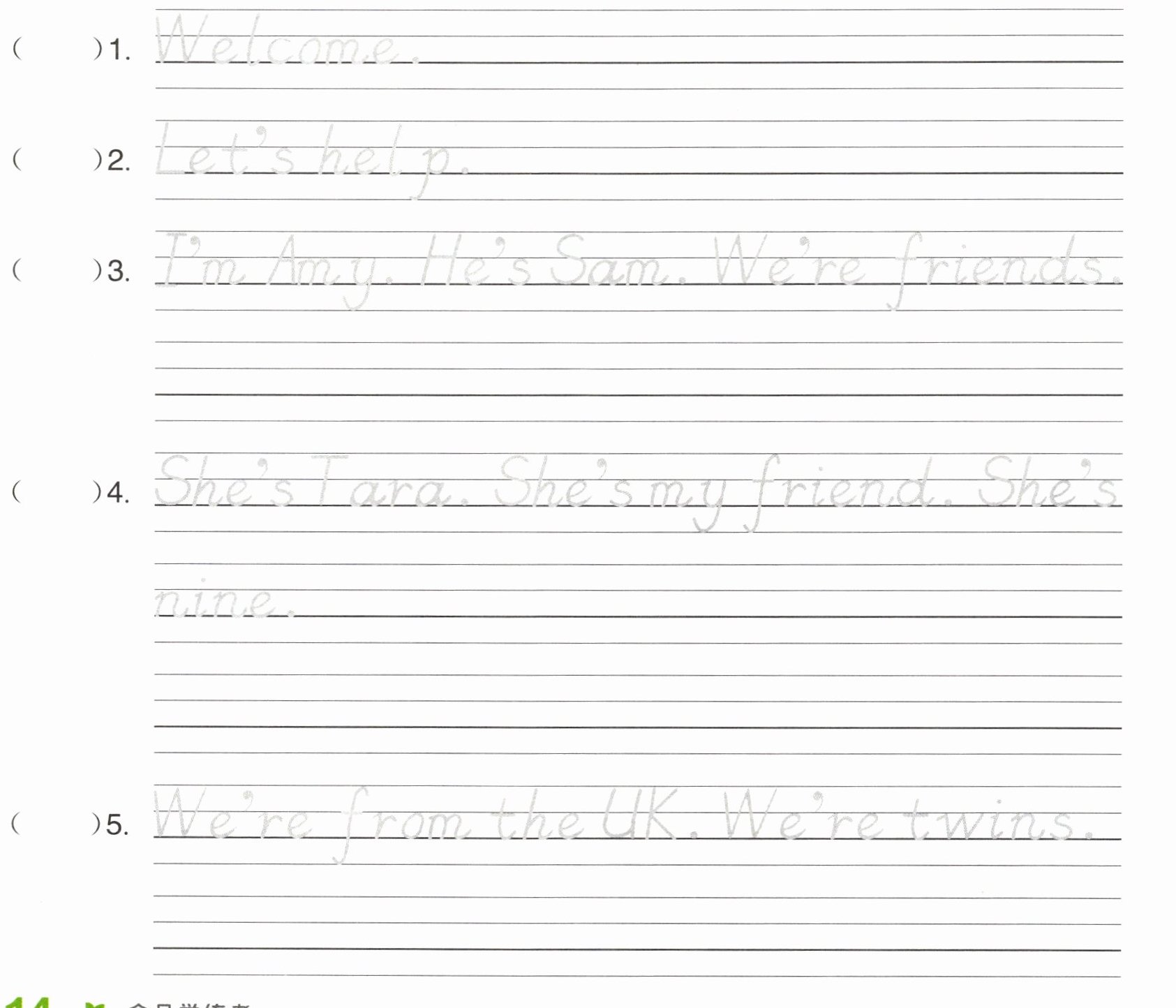 二 描一描,选择正确的图片,并在四线三格中抄写句子。