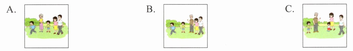 五 看图,读一读,选择合适的句子,将序号写在方框里。
