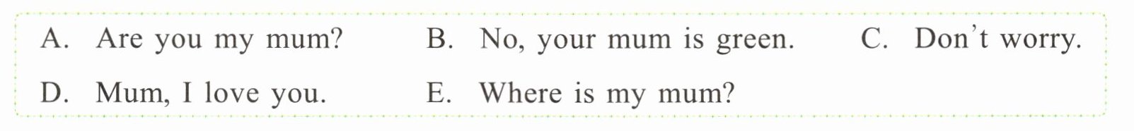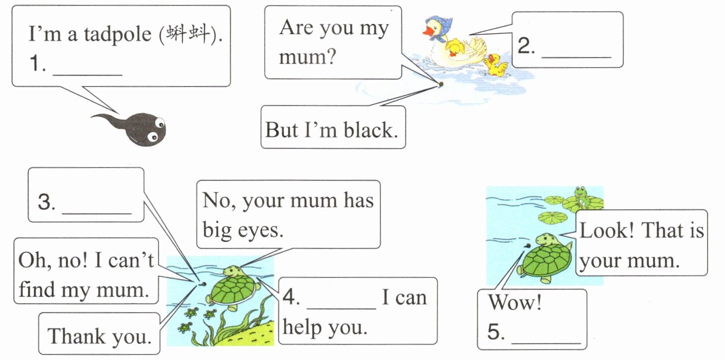 六 小蝌蚪找不到妈妈了,它的妈妈在哪里呢?看图,选择合适的选项完成对话。