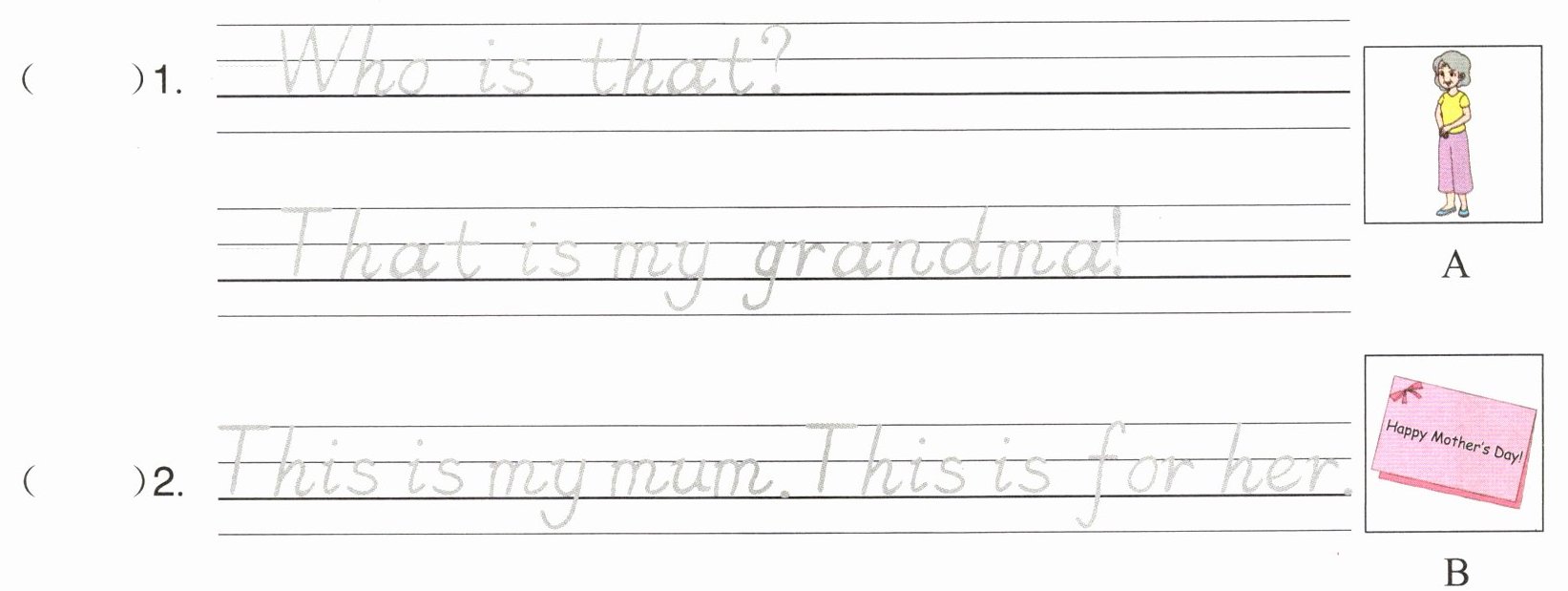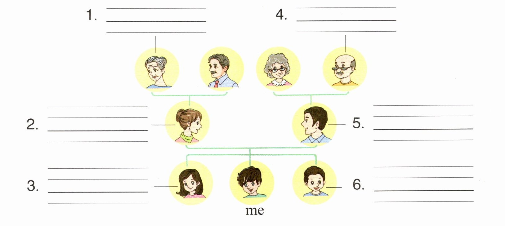1. grandma 2. mum 3. sister 4. grandpa 5. dad 6. brother 7. family (部分答案不唯一)