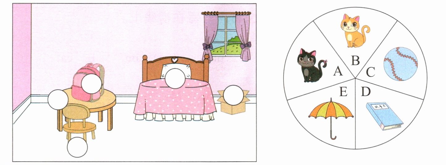 听录音,将物品或猫放在房间内正确的位置。