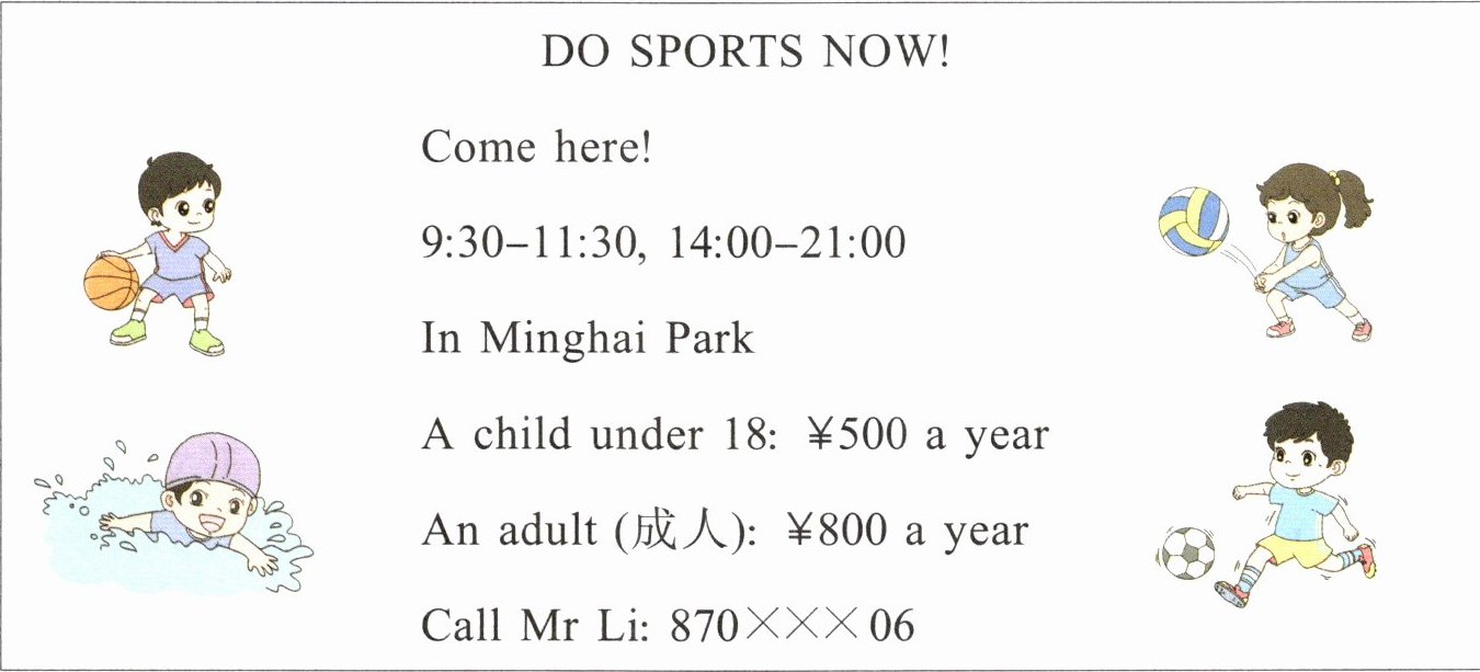 )3. You can call Mr Li if (如果) you want to do sports. (