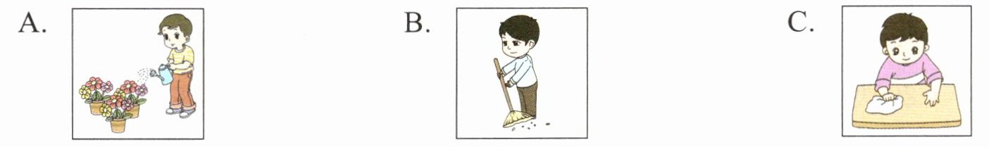 )2. What does Bob do in the morning?A. He cleans the room.