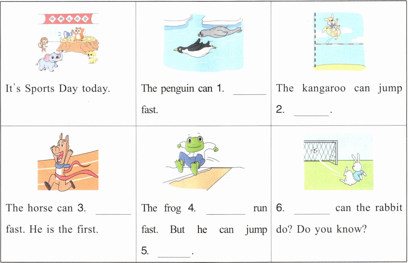 六、动物们要举办运动会啦!看图,选择正确的单词补全故事。